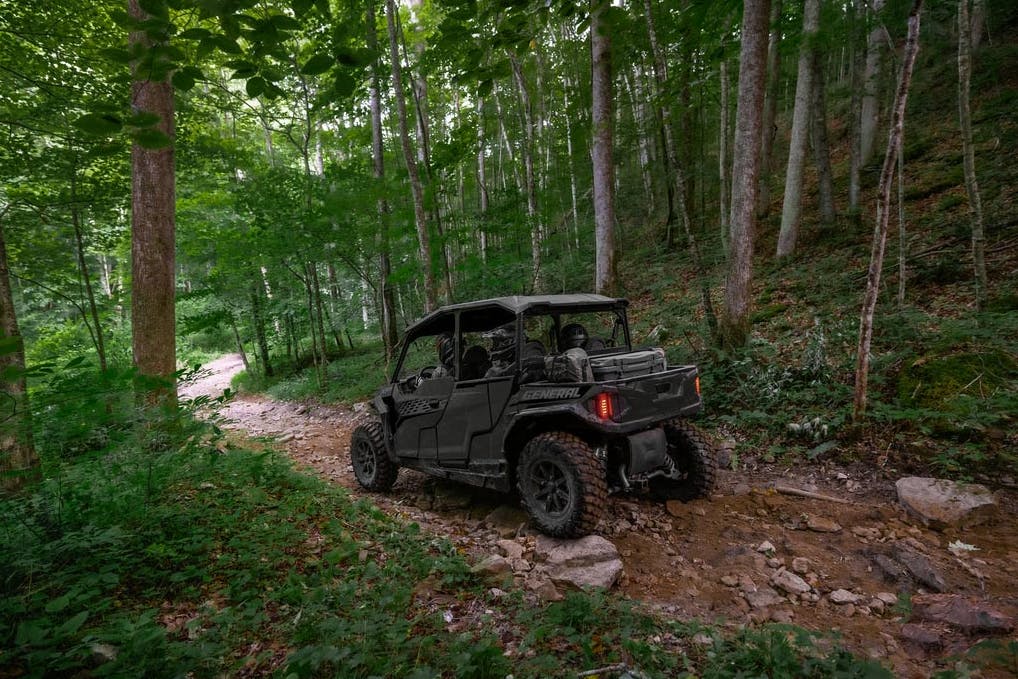Both the two and four-seat versions of the General XP 1000 offer three trim levels: Sport, Premium, and Ultimate. They all share the same improved suspension and trail manners, but the Premium and Ultimate trim levels add infotainment to the mix in the form of Rockford Fosgate sound systems.