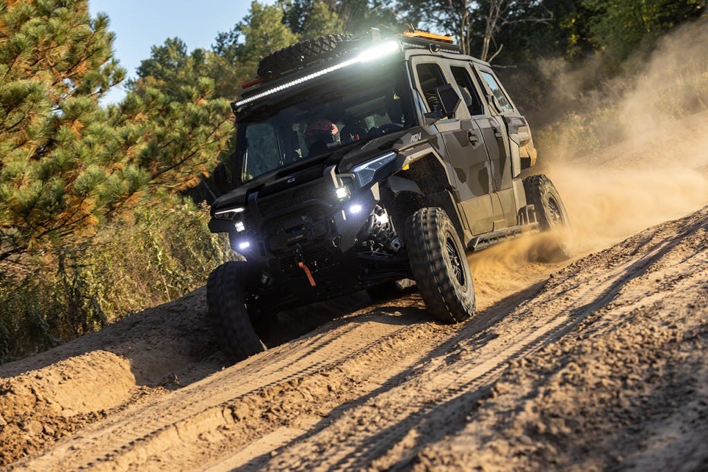 Again, the Xpedition’s powertrain lets it down. And not just because the engine doesn’t always feel up to the job. That 1.0-liter parallel twin is thrashy and loud, two things you definitely don’t want in a machine you’re going to spend all day in. Polaris has been working to address complaints—recent mechanical updates have helped reduce the amount of heat and noise that make their way into the Xpedition’s cabin. But there’s still a ways to go.