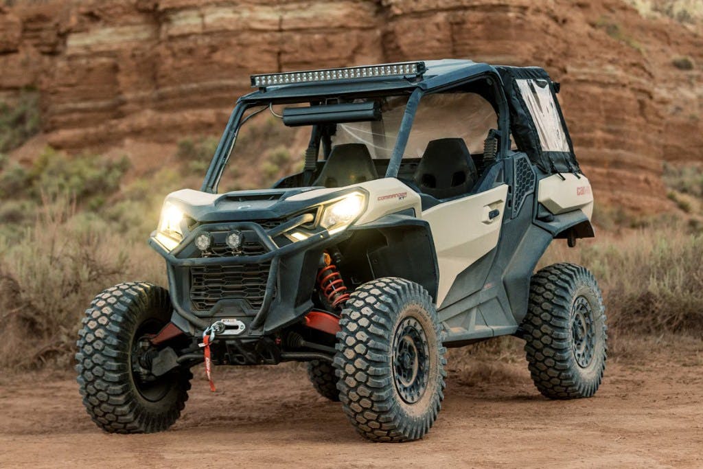 For instance, every Commander comes equipped with full doors, which come in handy when things get muddy. They’re also surprisingly light, weighing as little as 1,530 pounds dry for the base model, which means you can haul them out to the trail in damn near anything north of a Honda Accord.