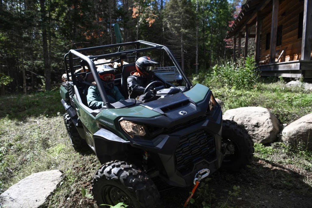 The Can-Am Commander is the brand’s do-it-all rig. With room for two, a generous payload capacity, and proper capability out on the trail, this machine earns its reputation as equally suited for hauling lumber and hauling the mail.