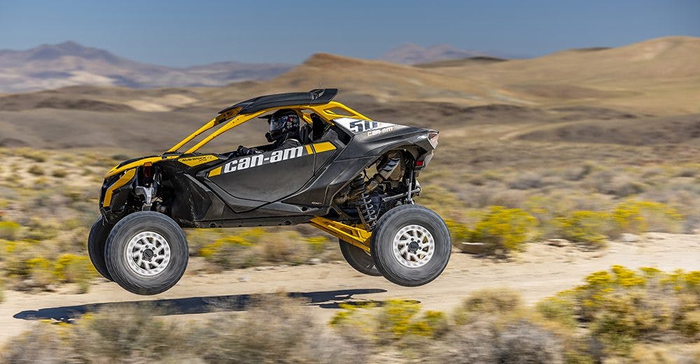 An RZR Pro R is nothing to sneeze at, right? Bonkers quick, a hot rod, puts fear in the hearts of men? This is more, better, faster, stronger. And for all people talk about that engine, the suspension is the star here: Anything the RZR Pro R can do, the Mav can do better. Easier. With less stress, more grip, more driver chill factor.