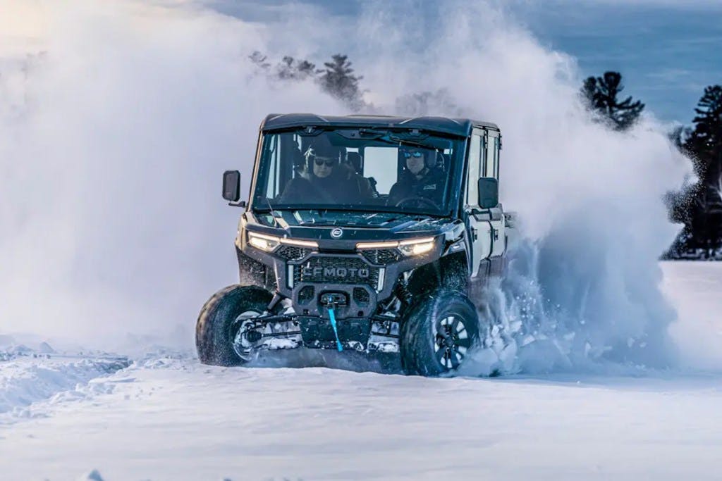Folks looking for an affordable-yet-premium HVAC-equipped rig will also find considerable value in CFMoto’s “Highland” trim package, which does a solid impression of Can-Am’s “Limited” trim, complete with a fully sealed cab, premium upholstered seats, sound deadening, power windows, and color-matched body panels.