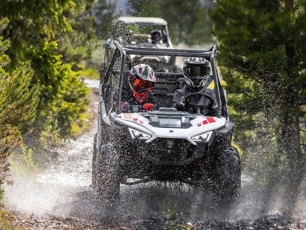 It’s also about as close to a full-size RZR as you can get. The 200 EFI comes with disc brakes on all four corners, a PVT transmission, LED lights, and styling similar to the iconic looks of the Pro R, Pro XP, and Pro S.